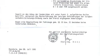 Für die Fußrasten habe ich im Netz das passende Gutachten gefunden.