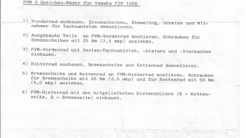 Ich habe eine 87er FZR 1000 2LA als Teileträger erworben. Bei dem Moped waren neben einem Pferrer Höcker (Typ S4) und einer KVT Fußrastenanlage auch Felgen von PVM verbaut.