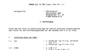 Mein Problem sind eher die Felgen...hier im Forum habe ich ein Gutachten für die FZ 750 gefunden, allerdings passt da zumindest vorne der Typ auch nicht ![]()